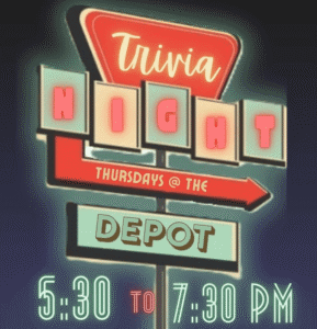 Upcoming Events: Music, Trivia, Popups, & Authors Trivia Night on Thursdays: Join fellow mental gymnasts at the Depot every otherĀ Thursday Evening from 5:30 – 7:30! Grab some friends and make a team! The winners are rewarded with a Depot Gift Card, and everyone else leaves with weird, valuable knowledge to drop at parties. Get email reminders here.Ā Next up:āāāāāāāāāāāāā January 30,Ā Sonja & Bill, February 13, Nancy & Chrissie, February 27,Ā Sonja & Bill, March 13, Nancy & chrissie