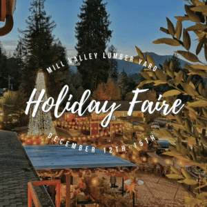 The Mill Valley Lumber Yard Holiday Faire is back! Holiday FaireĀ December 12-15th. Feel the winter spirit and join us December 12-15th for live music, unique holiday shopping, photos with Santa, a dog parade, crafts, delicious food, warm drinks and a seat by the fire pit to enjoy the festivities.