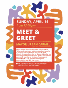 Read MoreMt. Tamalpais Methodist Church Hosts Mayor Urban Carmel for an Issues-Driven Meet & Greet ā April 14th