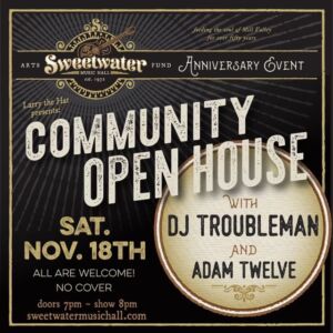 Soon after the gala, the Sweetwater hosts a free Community Open House event featuring DJ Troubleman and Adam Twelve. Also on Nov. 18, the Mill Valley Library hosts a ‘Sing & Stomp’ at the Sweetwater, with a performance featuring musician Emily Bonn and her band, the Sing & Stompers!