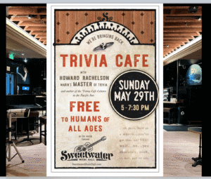 The folks at the Sweetwater Music Hall want to find out. They’re reviving the popular Trivia Cafe, starting this Sunday, May 29, 5-7:30pm. Hosted by Howard Rachelson, Marin’s trivia master and the author of the Pacific Sun’s Trivia Cafe column, the event features great questions, visuals and music from all categories.