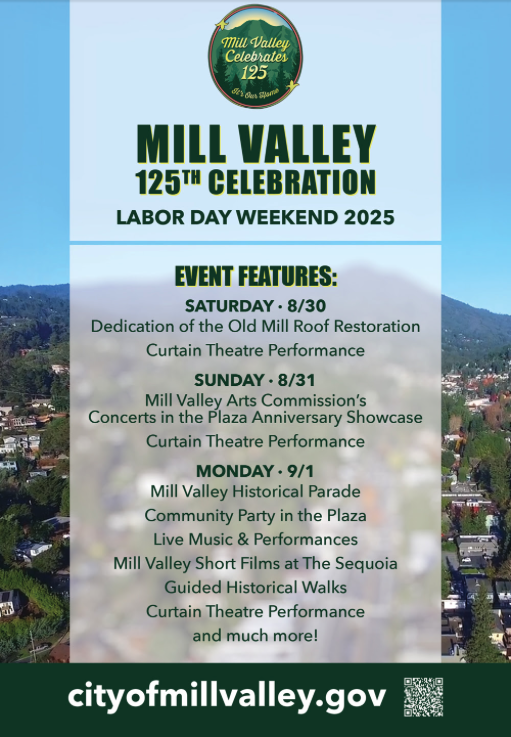 As so many of you already know, 2025 marks the 125th anniversary of Mill Valley’s incorporation, and recognition of this milestone will culminate with a full day of celebratory activities on Monday, September 1st. It’s going to be a, incredible day!