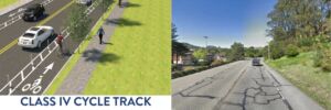 East Blithedale Ave., outbound from Lomita/Roque Moraes intersection, at right, and a proposed Class IV bike lane. Courtesy images. There’s no doubt that the volume of people cruising around Mill Valley on two wheels over the past year has spiked dramatically. There are myriad reasons for that trend, of course, from all of us seeking…