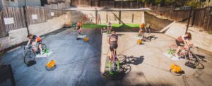 Tim Fleming, at center, conducts an eCycling session with clients in the parking lot across the street from his Endurance Performing Training Center on Madrona Street in downtown Mill Valley, Courtesy image. Forty-two days after Marin County came out of a herky-jerky appeals process with the California Department of Public Health and moved into the red tier 2, Marin…