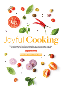 We’ve asked eight local food lovers to share their favorite home recipes, inspired by our theme of joy, the four seasons and real foods and products found in Marin. Click the images to see a larger version of the recipe. You’ll find these recipes and an array of other inspiring, practical content, from bits of wisdom to capsules…