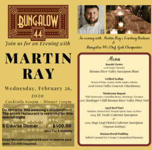Read MoreMartin Ray Winery’s Courtney Benham, Bungalow 44 Chef Gabe Charpentier Curate 5-Course Pairing – Feb. 26