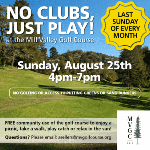 Read MoreMill Valley Golf Course’s ‘No Clubs, Just Play’ Returns to MV Golf Course on Aug. 25th, 4-7pm!