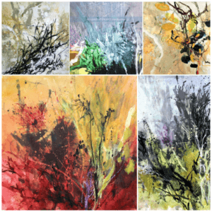 “My paintings reside in that indefinite space between landscape and organic abstraction,” explains Stewart. “I find inspiration in the visible world around me as well as in the microscopic world that describes the unseen realm of cells and systems, growth patterns and interconnections.”