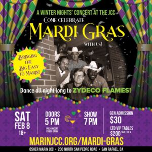Read MoreMarin JCC Returns With a A Winter Nights’ Mardi Gras Concert Featuring the Zydeco Flames ā Sat., Feb. 8th, 5-10pm