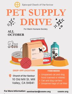 The Episcopal Church of Our Saviour in Mill Valley Hosts Pet Supply Drive ā Throughout October!