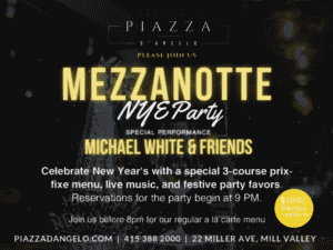 Piazza DāAngelo co-owners Luigi Petrone and Felicia Ferguson are taking it up a notch for 2023 New Year’s Eve! They’ve invited longtime local favorite band Michael White & Friends to perform at the restaurant. Celebrate New Year’s with a special 3-course prix-fixe menu, live music and festive party favors,” D’Angelo’s owners say.Ā