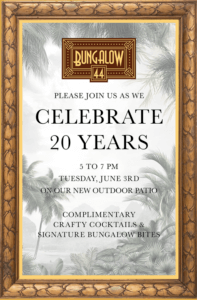 “Come raise a glass with us on the newly renovated patio, toast to the good times (past and future), and enjoy some bites, sips, and familiar faces,” says the Bungalow team.Ā Itās our way of saying thank you for being part of the Bungalow family over the years. Itās our way of saying thank you for being part of the Bungalow family over the years. “We look forward to raising a glass with you! Bill, Peter, Jason, Robert and the whole B44 team. We hope to see you there!