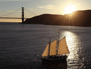 Step aboard the classic schooner Freda B and enjoy a magical trip back in time. Snuggle up or spend time with your BFF as we sail into the sunset. Catch views of the Golden Gate Bridge, San Francisco, Angel Island, Alcatraz, and the Sausalito waterfront. Schooner Freda B is a sea kind 80′ gaff rigged coastal schooner, making her one of the San Francisco Bay’s most comfortable and traditional vessels to sail. Experience the romance of yesteryear with a local, licensed Captain and Professional Crew.