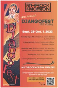 After a pandemic-fueled hiatus, DjangoFest, the longstanding event inspired by the late gypsy jazz guitarist Django Reinhardt, returns to the Throckmorton Theatre Sept. 29-Oct. 2 for five blockbuster concerts, including a DjangoFest D’Jam featuring all of the performers on one stage.