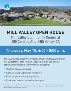 Read MorePG&E Is Hosting an Open House for Mill Valley Customers at the Mill Valley Community Center on Thursday, May 15, from 6-8pm ā They Hope to Share More About What They Are Doing to Reduce Wildfire Risk